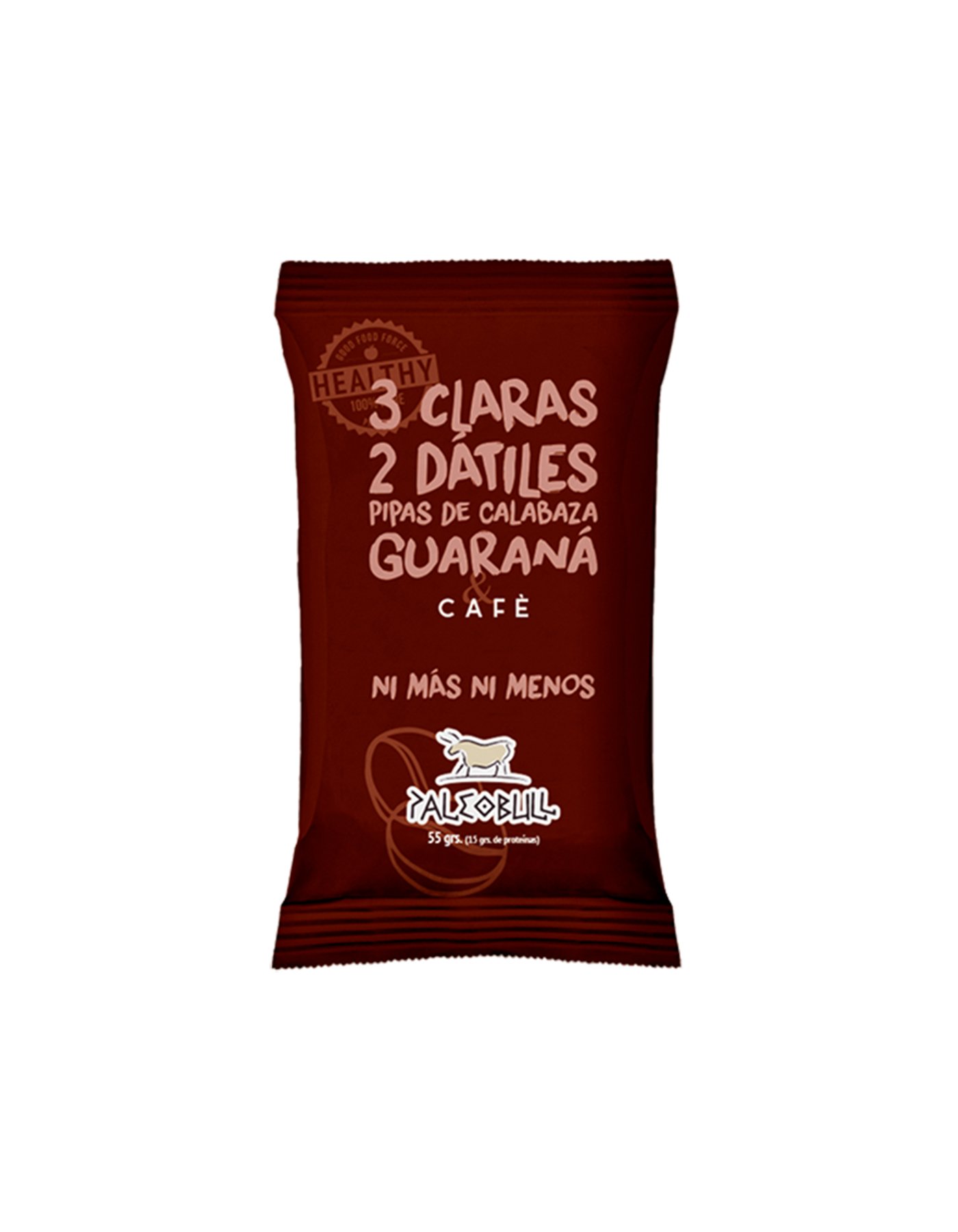SÓLO INGREDIENTES NATURALES: Dátiles (57%), clara de huevo deshidratada (22%), pipas de calabaza (19%), café (1%) y guaraná (1%).
