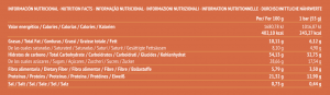 SOLO INGREDIENTES NATURALES: Dátil (43%), clara de huevo deshidratada (21%), fruta deshidratada (mango-15% y coco-10%) y aroma de mango.