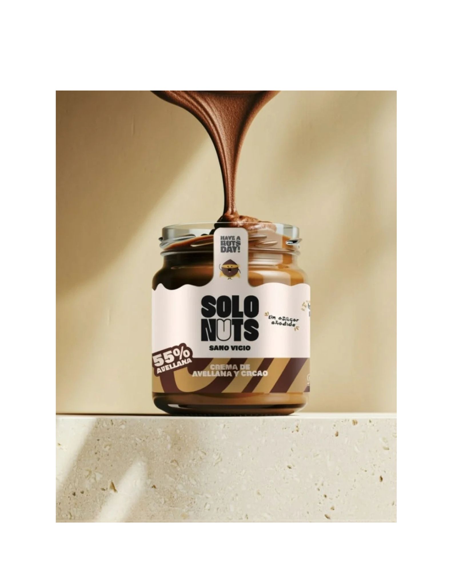 Ingredientes: Avellana tostada (55%), pasta de dátil, cacao en polvo (8%) y AOVE