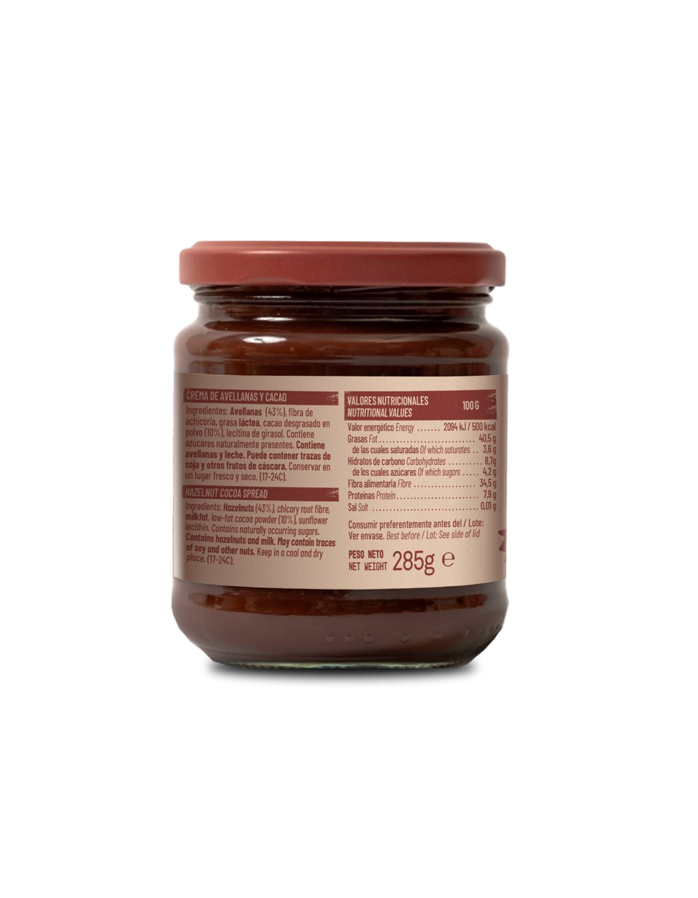 Avellanas (43%), cacao desgrasado en polvo (10%), lecitina de girasol, grasa láctea, fibra de achicoria. – Peso: 285g.
